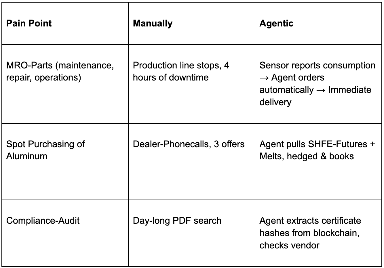 - Launch pilot projects - e.g. automated MRO sourcing with AI agents.